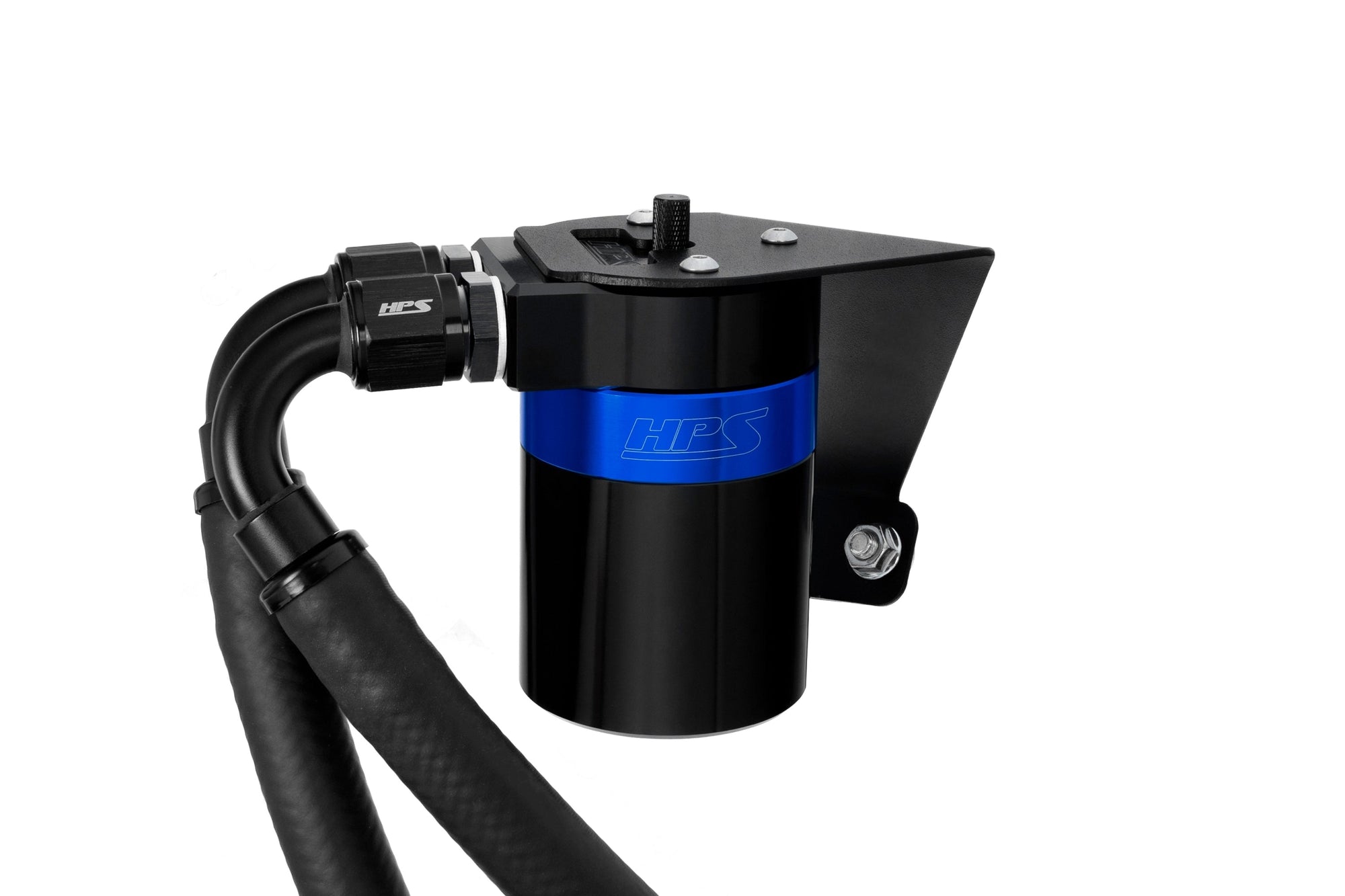 Preserve your engine’s performance with the HPS Performance Oil Catch Can Kit, expertly designed to tackle the damaging effects of crankcase blow-by. This system efficiently captures oil vapors and contaminants before they reach your intake, reducing carbon buildup that robs your engine of power. By promoting cleaner combustion, it helps maintain optimal engine output and prolongs the life of internal components. Constructed from high-grade billet aluminum, the 5oz canister is built to withstand rigorous conditions. Maintenance is effortless thanks to the integrated dipstick and user-friendly removable can. With a custom-fit mounting bracket and premium -10 AN hoses, installation is secure and requires no permanent alterations to your engine bay. Protect your engine, optimize performance, and enjoy peace of mind every time you drive.