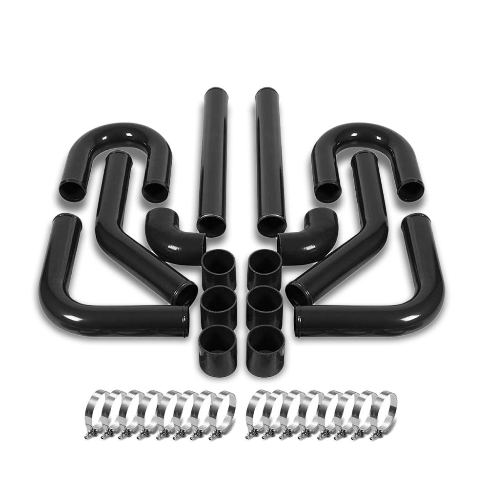 Universal 2.50" Black 8PC Front Mount Intercooler Pipe Straight/Elbow Hose+Clamp