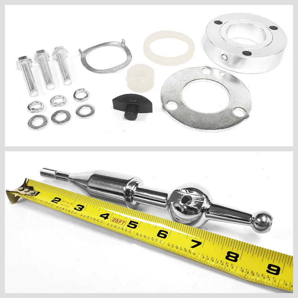 The Short Shifter is made with high strength billet steel and nickel plated for ultra low friction and corrosion resistance. The throw is reduced up to 40%, and shift knob height is reduced up to 3 inches depending on the model. These shifters provide a more precise shift and allows for quicker shifting without drastically changing the overall driving experience. They have been designed specifically for the more aggressive tuner who demands the most extreme shifter in terms of both looks and performance.