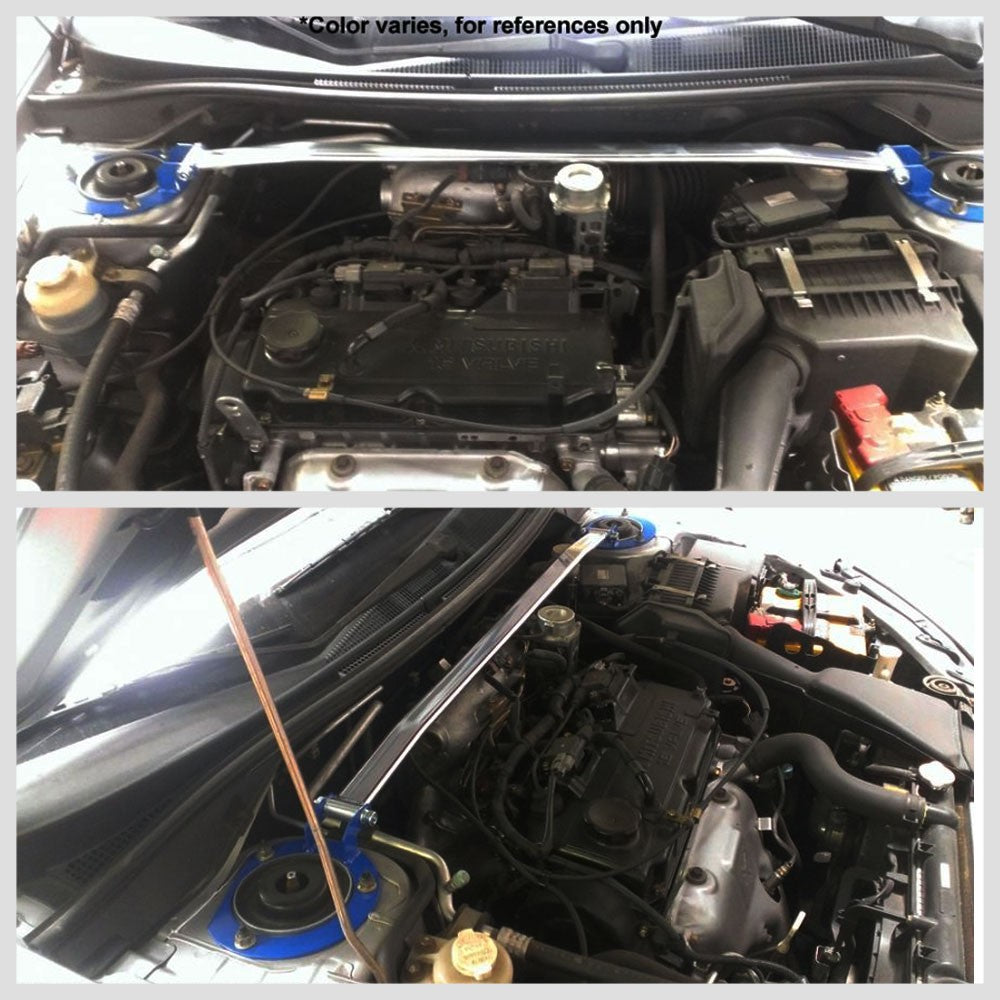 One-Piece Race Spec Strut Tower Bar constructed of strong Aluminum to extremely tight tolerances and then polished to perfection. This bar ties the chassis from left to right at critical stress points (Between the shock/strut towers) to decrease body roll