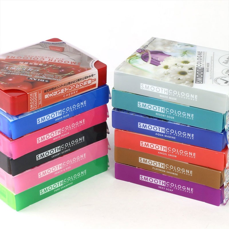 The Smooth Cologne Air Freshener is a gel base product that is design for your home, office, car or restroom. Smooth cologne is one of the most well-known air fresheners around the world and made in japan with the high quality scent. These products have the ability to deodorize any bad smells that comes from pets, people or smoking. This unique product freshens the air with the fresh fruity perfume style to bold scents. Overall it is ideal for this product if used in a car to be placed under the seat due to its size.