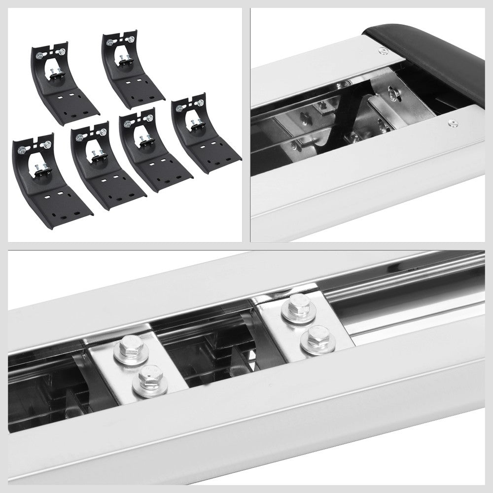 Running boards give your ride a massive boost when it comes to look and utility. Combining the stylish appearance and rugged looks, these inventive running boards are the ideal way to upgrade your truck or SUV. Constructed from high quality grade aluminum frames, you can be sure this running board will withstand the roughest of weather conditions as well as the test of time. They are built tough and are highly corrosion resistant. Getting in and out of your vehicle is easy with the large non-skid molded pads that ensure secure footing. No drill installation! These running boards are very easy to install with the brackets fitting right into the existing factory holes. By not having to not drill in to your vehicle, your time and effort is saved by you.