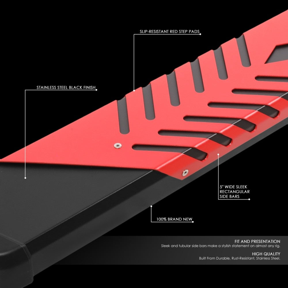 Running boards give your ride a massive boost when it comes to look and utility. Combining the stylish appearance and rugged looks, these inventive running boards are the ideal way to upgrade your truck or SUV. Constructed from high quality grade aluminum frames, you can be sure this running board will withstand the roughest of weather conditions as well as the test of time. They are built tough and are highly corrosion resistant. Getting in and out of your vehicle is easy with the large non-skid molded pads that ensure secure footing. No drill installation! These running boards are very easy to install with the brackets fitting right into the existing factory holes. By not having to not drill in to your vehicle, your time and effort is saved by you.