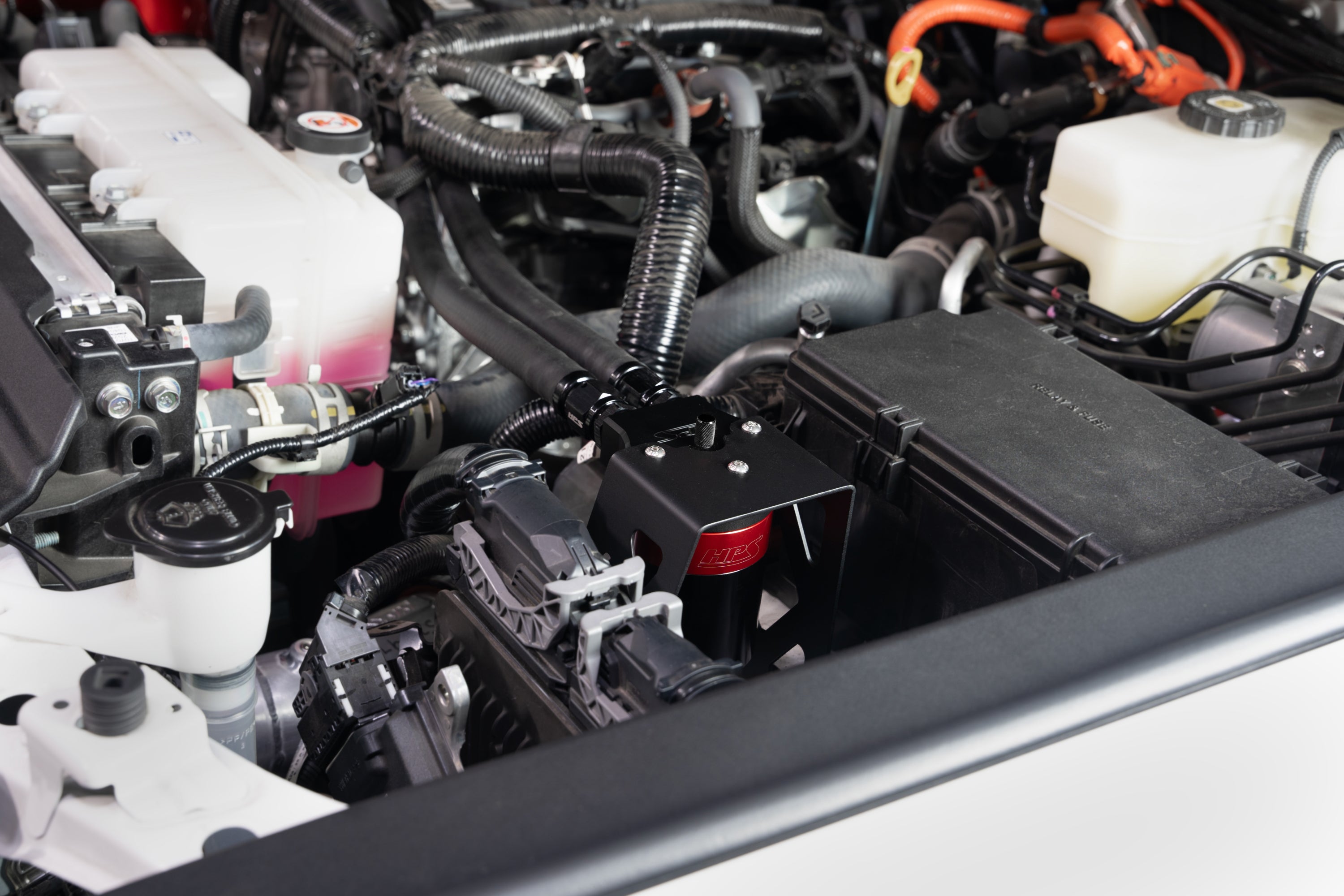 Engineered for the most demanding driving environments, the HPS Performance Oil Catch Can Kit is the essential upgrade for trapping destructive crankcase contaminants. This kit works to capture oil blow-by, halting the power-robbing carbon accumulation before it starts. By maintaining a cleaner combustion process, the HPS catch can ensures your engine operates at its full potential and dramatically extends the service life of its most important parts. Constructed from robust billet aluminum and featuring a high-capacity 5oz reservoir, this catch can is built for rigorous use. Maintenance is effortless, thanks to the integrated dipstick for fluid inspection and simple-to-remove canister for convenient servicing on the go. The installation process is designed to be quick and direct, utilizing a custom-fit bracket that guarantees a secure, bolt-on fit with no modifications required. This comprehensive kit comes complete with premium -10 AN hoses and fittings. Integrate the HPS Performance Oil Catch Can into your vehicle to shield your engine from harmful impurities and optimize its efficiency.