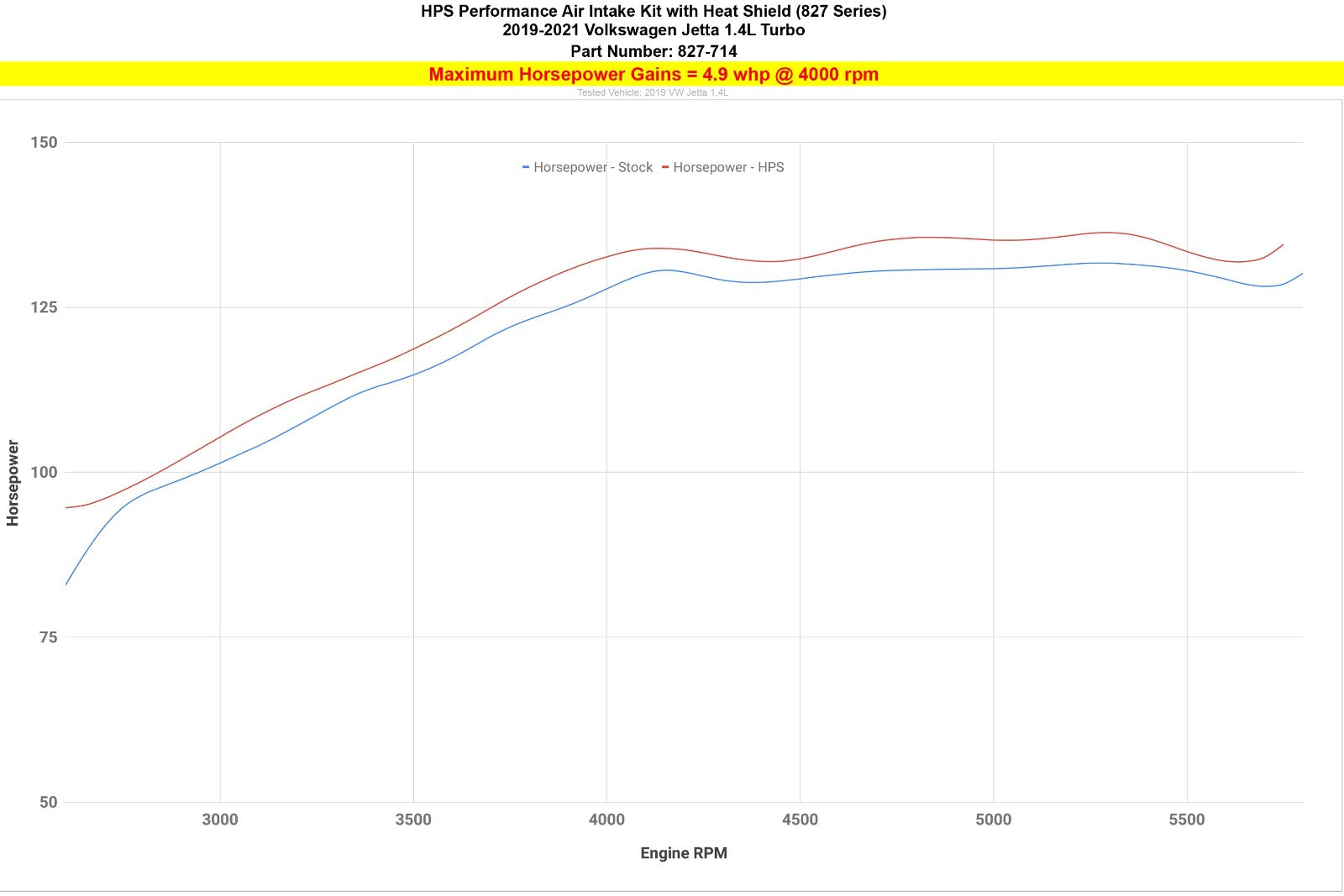 Take your driving experience to new heights with this HPS Performance Air Intake Kit. Enjoy better throttle response and improved acceleration as your engine comes to life, delivering an additional 4.9 horsepower and 4.2 lb-ft. of torque!The heart of this kit lies in its reusable high flow cotton air filter and 3 inch mandrel-bent aluminum intake tube that are designed to optimize airflow and minimize restrictions for maximum performance. Coupled with a reinforced silicone reducing coupler and 100% stainless steel T-bolt clamps, this kit ensures a secure fit, preventing any leaks or disruptions regardless of operating conditions. The custom powder coated steel heat shield works to maintain a consistent, cool air supply to your engine by isolating the air filter from radiant heat from the engine.This easy to install kit requires a few basic tools and absolutely no modifications to effortlessly enhance your time on the road.