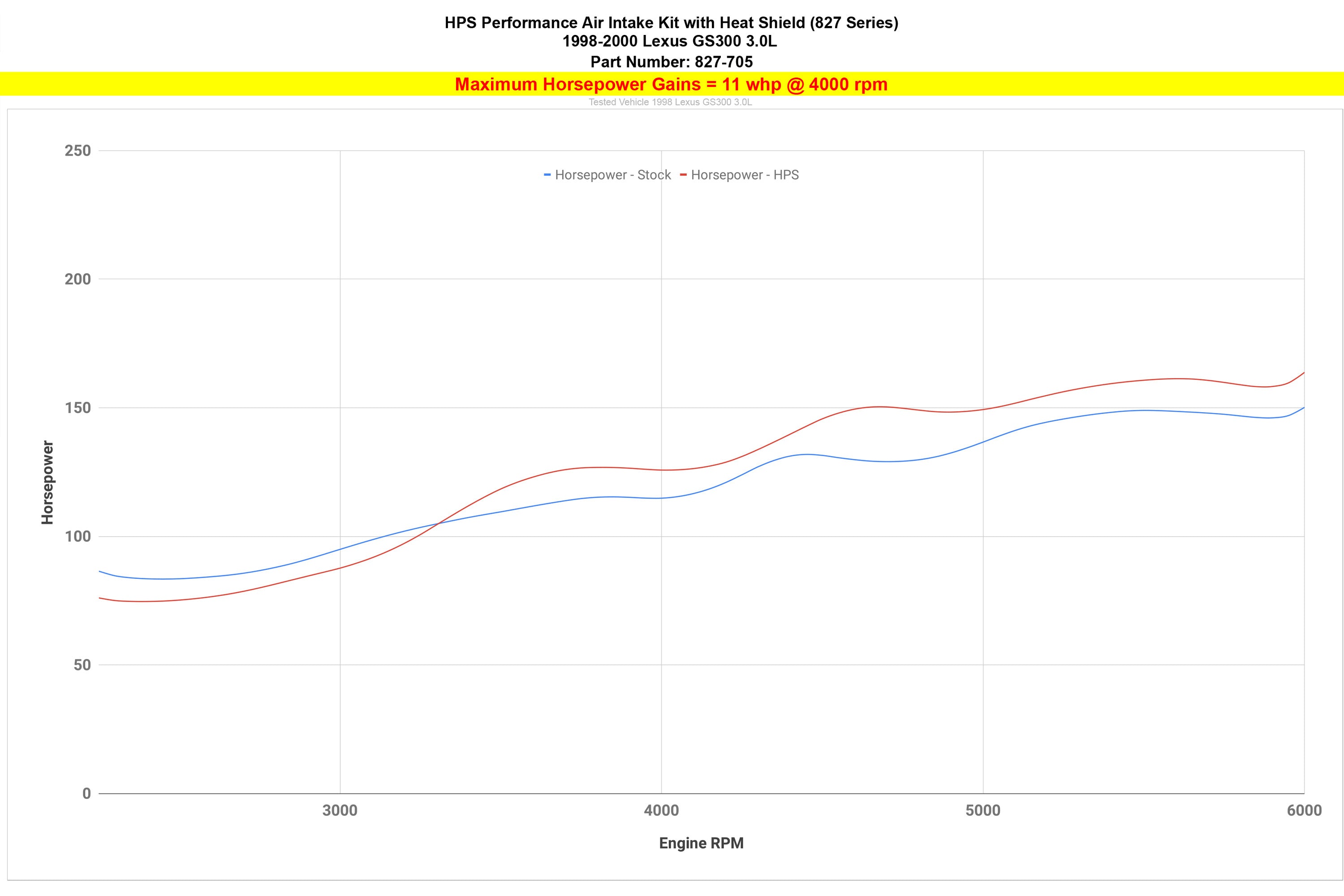 HPS Performance Air Intake Kits are designed with style and performance in mind. This HPS Performance Air Intake Kit replaces the factory intake and air filter housing with a 3" custom mandrel-bent aluminum tube and heavy duty powder coated heat shield designed to maximize the performance of this vehicle. Its reusable high-flow cotton air filter to provide maximum airflow to increase your engine's output by up to 11 horsepower and 14.4 lb-ft. of torque for power you can feel through improved throttle response and acceleration. This kit includes HPS 100% stainless steel T-bolt clamps and a silicone reducing coupler that are engineered to withstand the toughest driving conditions. HPS Performance Air Intake Kits are designed and tested using the latest technology to ensure the best performance and fitment.